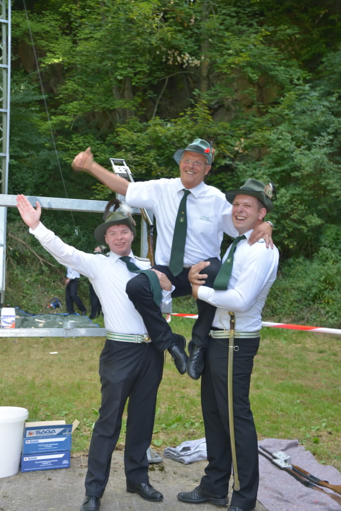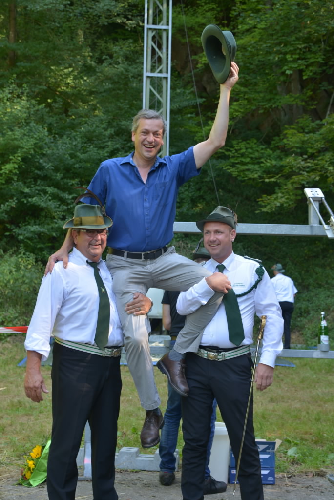 Eberhard von Wrede ist neuer Schützenkönig Mit dem 86 Schuß holte Eberhard von Wrede den hölzernen Aar von der Stange . Den Geck sicherte sich Geburtstagskind Berthold Müer.