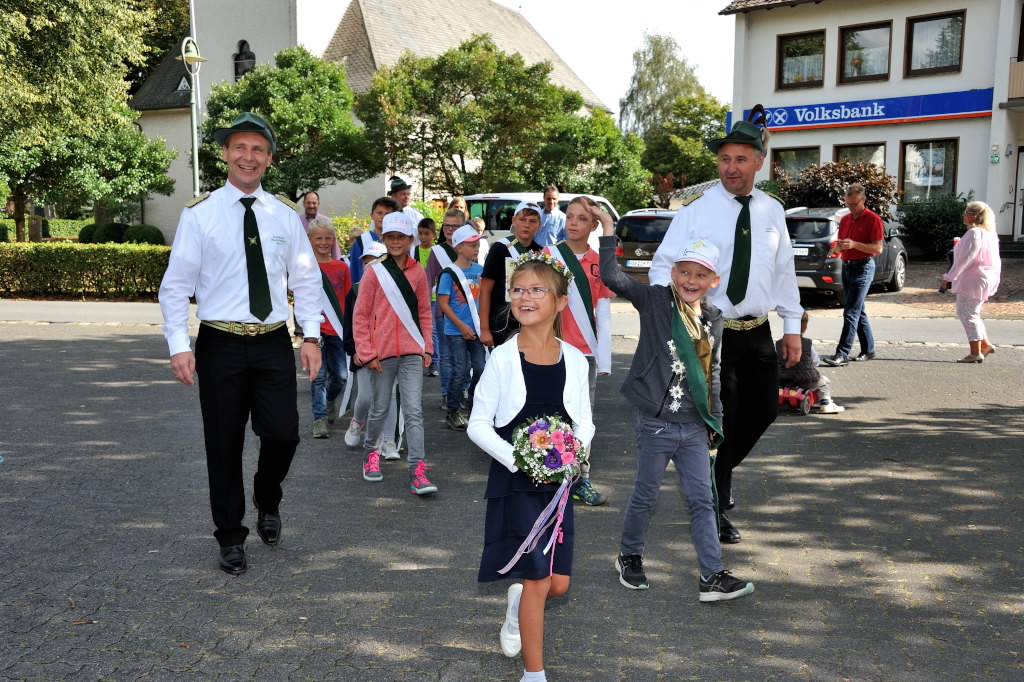 Gerade einmal 26 Tage ist es her, seitdem Vater Eberhard Freiherr von Wrede die Königswürde beim diesjährigen Schützenfest errang, da folgt Ihm auch schon Sohn Johann beim diesjährigen Kinderschützenfest auf dem Fuße.