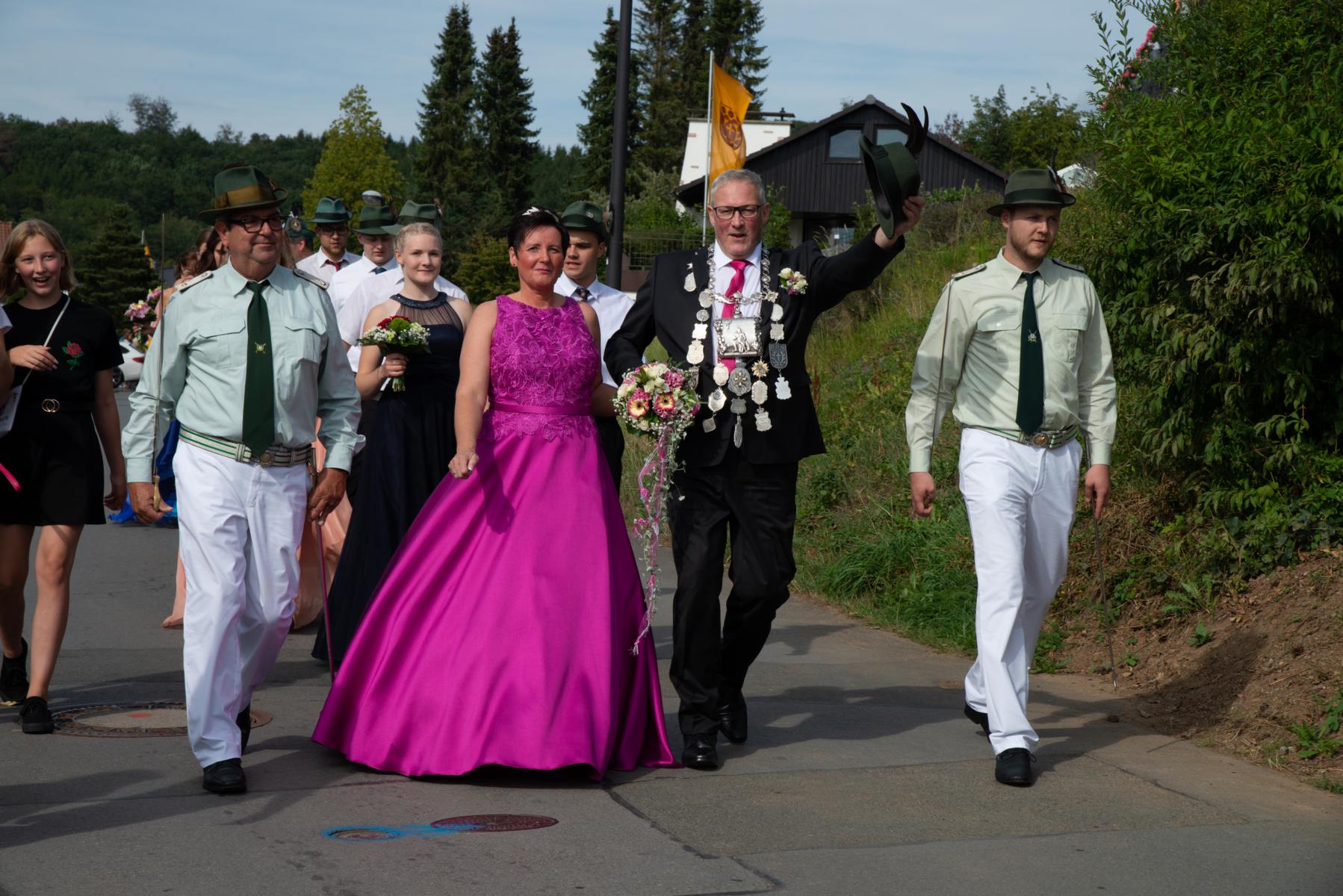 Da wir nicht unvorbereitet waren, konnten wir gemeinsam mit unserem Hofstaat sowie den Kapellen aus Affeln, Stockum und Sundern durch den Ort in die Festhalle marschieren. Nun begann ein unbeschreiblicher Nachmittag und Abend mit dem Hofstaat sowie den Festbesuchern. Ein besonderes Highlight war das Trompeten-Solo von Simon Terwedow, das durch eine verlorene Wette entstanden war.