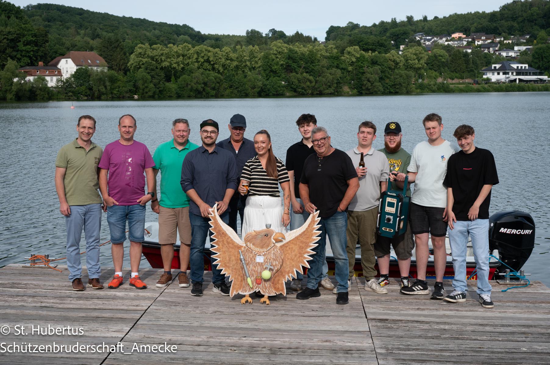 Zur Vogel- und Geckabnahme trafen sich der Vorstand der Schützenbruderschaft St. Hubertus Amecke mit Kind und Kegel in diesem Jahr wieder an der DLRG Wachstation in Amecke.